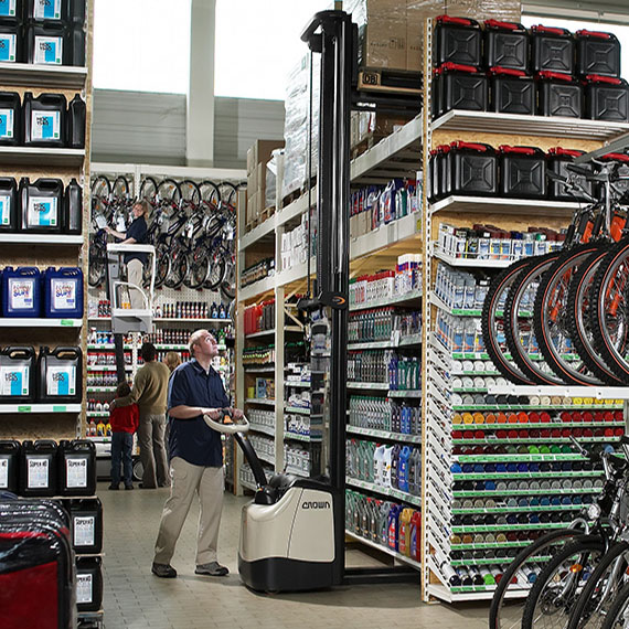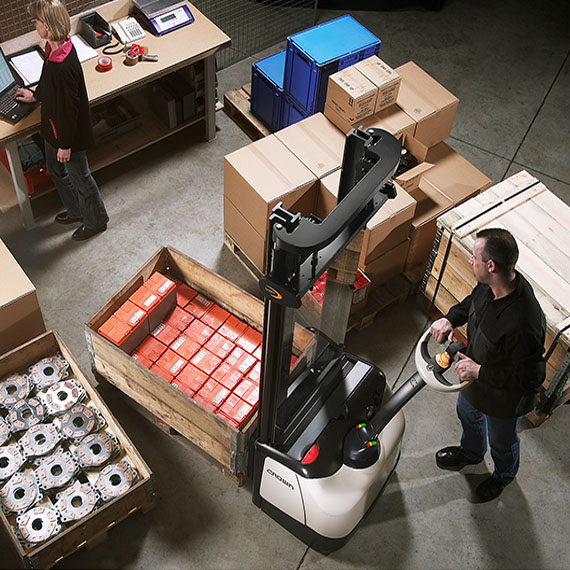 Os empilhadores da série WF da Crown permitem que você economize tempo e espaço e organize produtos para acesso mais rápido, ao mesmo tempo que oferece aos seus operadores uma maneira mais rápida e segura de levantar, transportar ou transportar cargas pesadas ou volumosas.