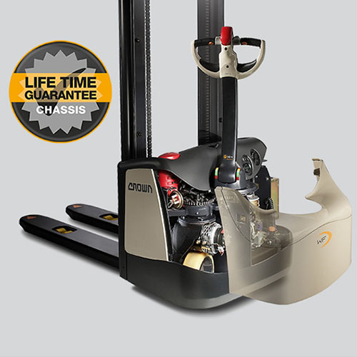 Os empilhadores da série WF da Crown permitem que você economize tempo e espaço e organize produtos para acesso mais rápido, ao mesmo tempo que oferece aos seus operadores uma maneira mais rápida e segura de levantar, transportar ou transportar cargas pesadas ou volumosas.