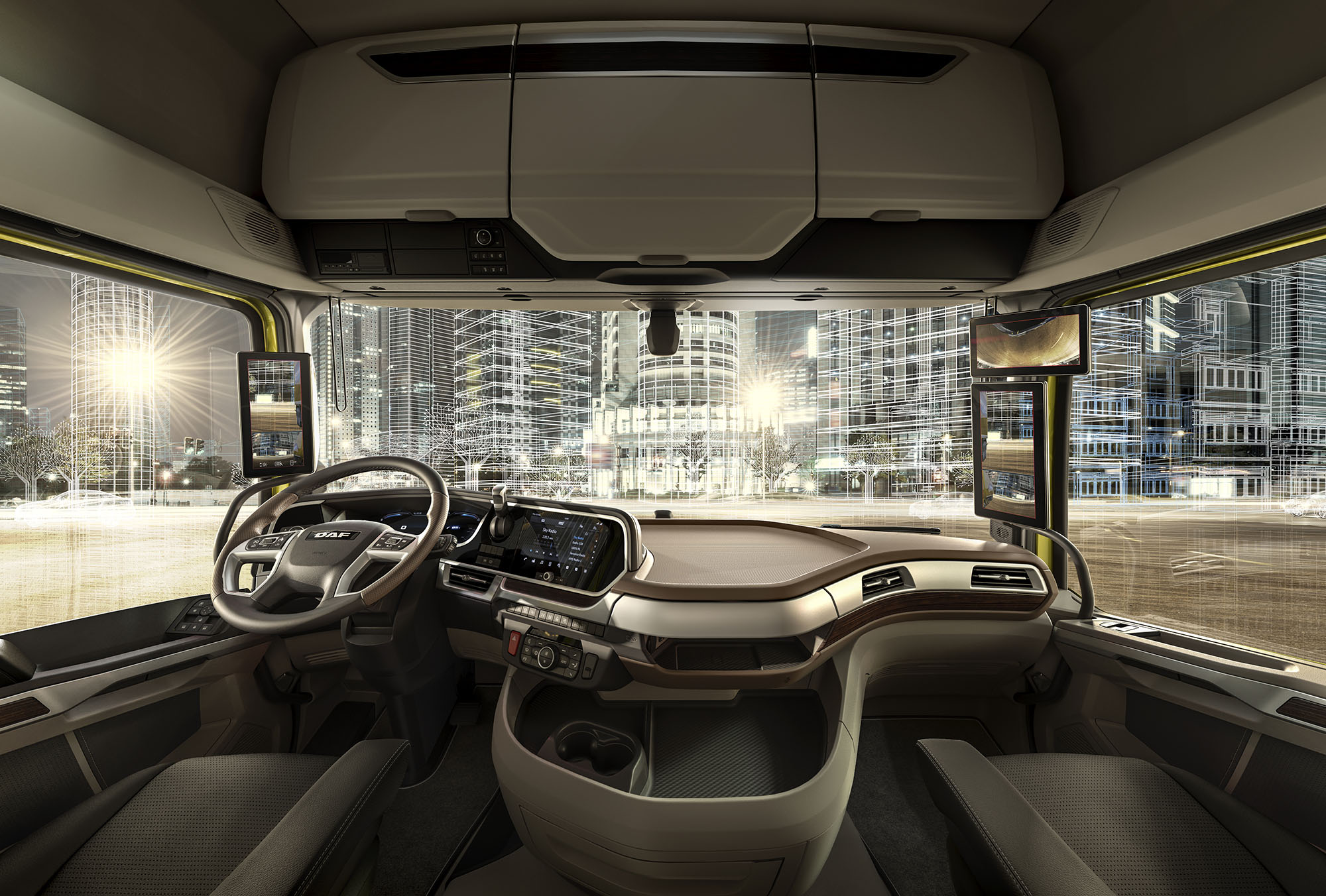 Desenvolvemos uma cabina totalmente nova, elegante e extremamente aerodinâmica. O design de raiz resultou de uma exploração exaustiva da nova legislação para massas e dimensões.